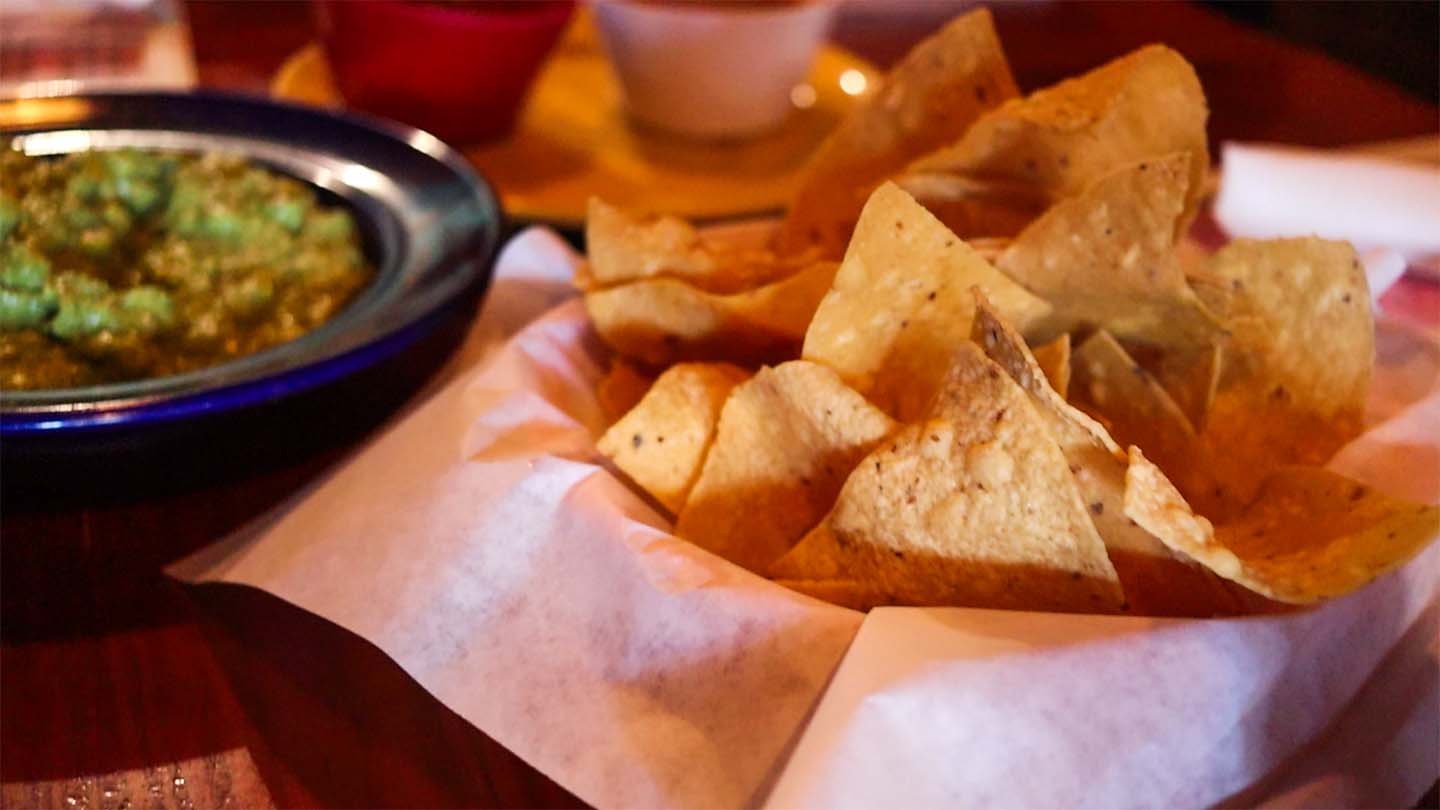 Homemade Tortilla Chips bakes with Monterey Jack, jalapenos, sour cream, guacamole, and salsa fresca.